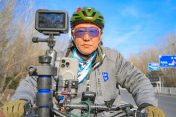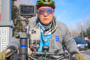 骑行中自拍---大雪中,不过大疆5拍摄的画面和单反还是没办法逼你滴。记录60岁后的自娱自乐。