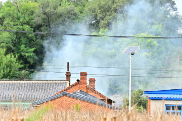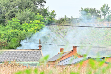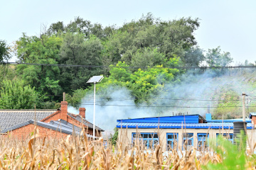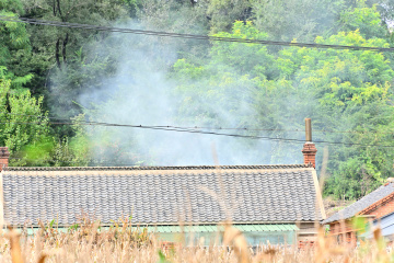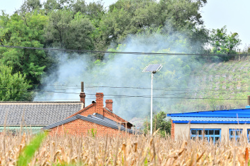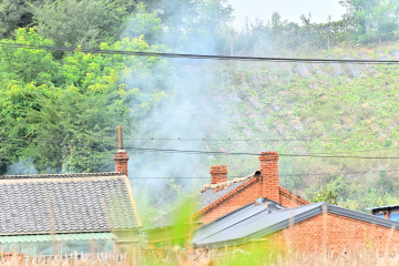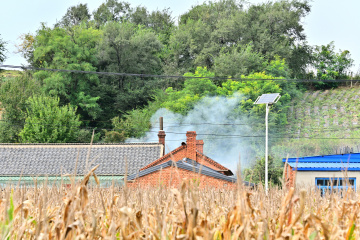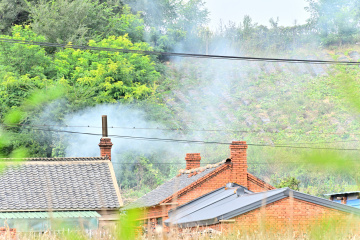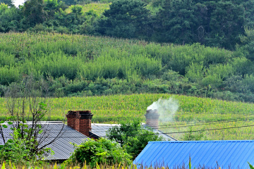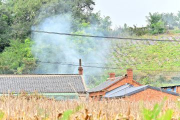 骑行途中的山脚下---炊烟生气---骑行近路不到60公里去拍摄。