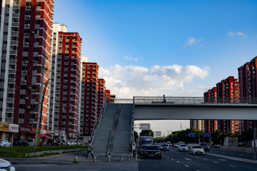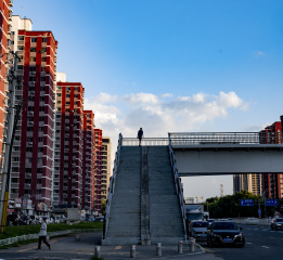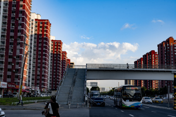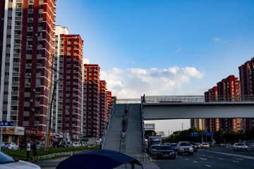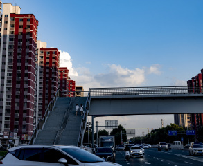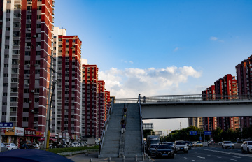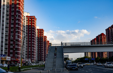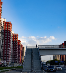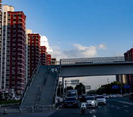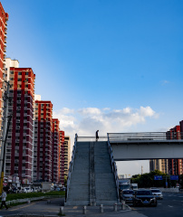 骑行归途中拍摄;过街天桥上的人们行色匆匆。骑行摄影,记录我60随后的骑行健身与摄影生活。